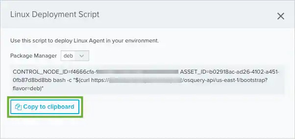 - Select the Package Manager type for the Linux distribution. The deb type is selected by default. If the asset uses a Red Hat distribution, select the rpm type.