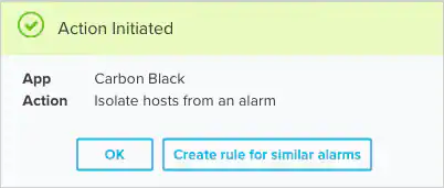 | Isolate Hosts from Alarm | Run this action directly from an alarm to send a request to Carbon Black EDR to isolate the associated endpoint(s) |