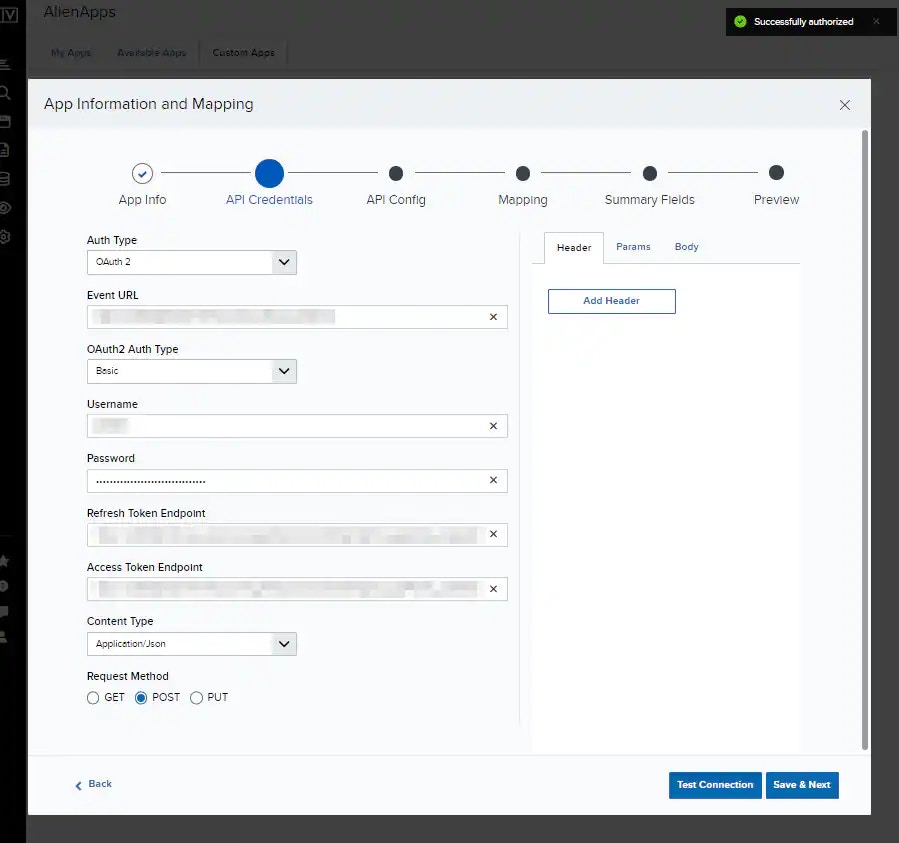 - Configure Headers, Params, and Body as required by the third-party application’s API.