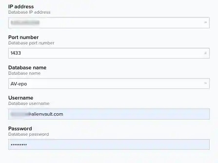 To configure the BlueApp for McAfee ePO, you must add a scheduled job in USM Anywhere that collects data directly from the SQL database in your McAfee ePO. Before you do this, there is information about your database that is required to make the connection:- Hostname or IP address of the SQL database