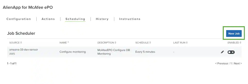 - Collect ePO Events: Schedules one job to collect ePO events from the sensor.