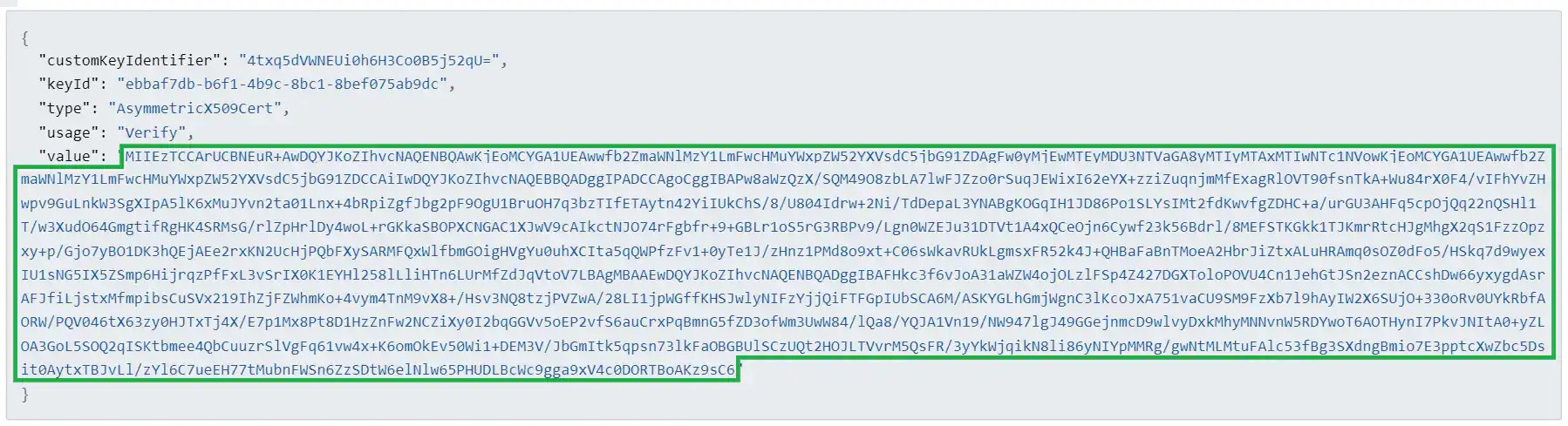 cert.pemfile created in the previous procedure, and then click Add. The credentials of the application are updated. -