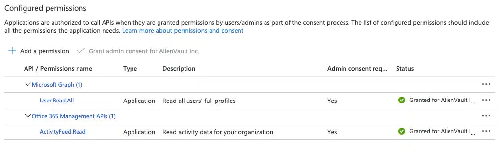 This integration requires connectivity between your USM Anywhere Sensor and the Microsoft APIs. If you have an Azure Sensor deployed in your Azure subscription, you should use this sensor to configure the BlueApp because you don’t need to configure additional permissions. If you use a non-Azure Sensor, you must set your firewall permissions based on the following table to allow inbound and outbound connections for the sensor. Firewall Permissions for the USM Anywhere Sensor| Type | Port | Endpoint | Purpose |