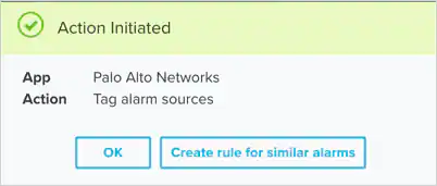 | Tag Source IP Address from Alarm | Run this action to tag a source IP address to a dynamic address group from an alarm |