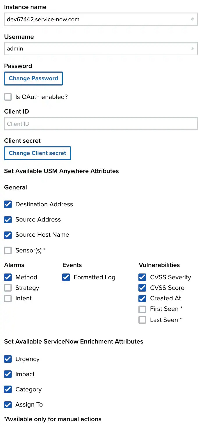 - Client ID: Enter the client ID that is configured in the ServiceNow OAuth Application Registry.