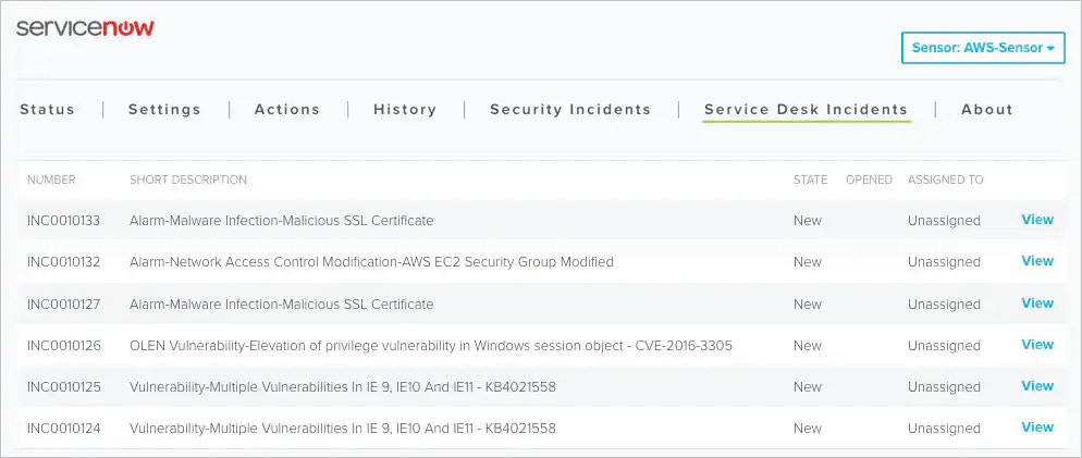 Viewing ServiceNow Incidents Created by USM Anywhere