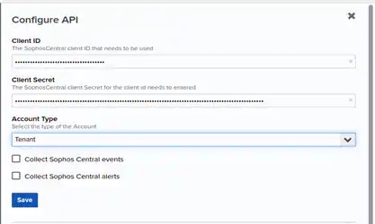 - Select Collect Sophos Central events or Collect Sophos Central alerts to limit the data collection from your Sophos Central environment.