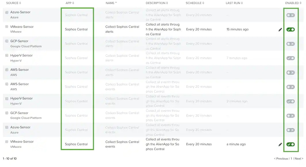 In the Filter by option at the top of the list, enter Sophos to filter the displayed list for the Sophos Central app jobs.
