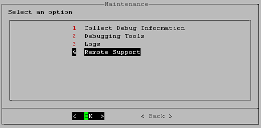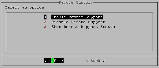 From the Remote Support menu, select Enable Remote Support and press Enter ( < OK > )