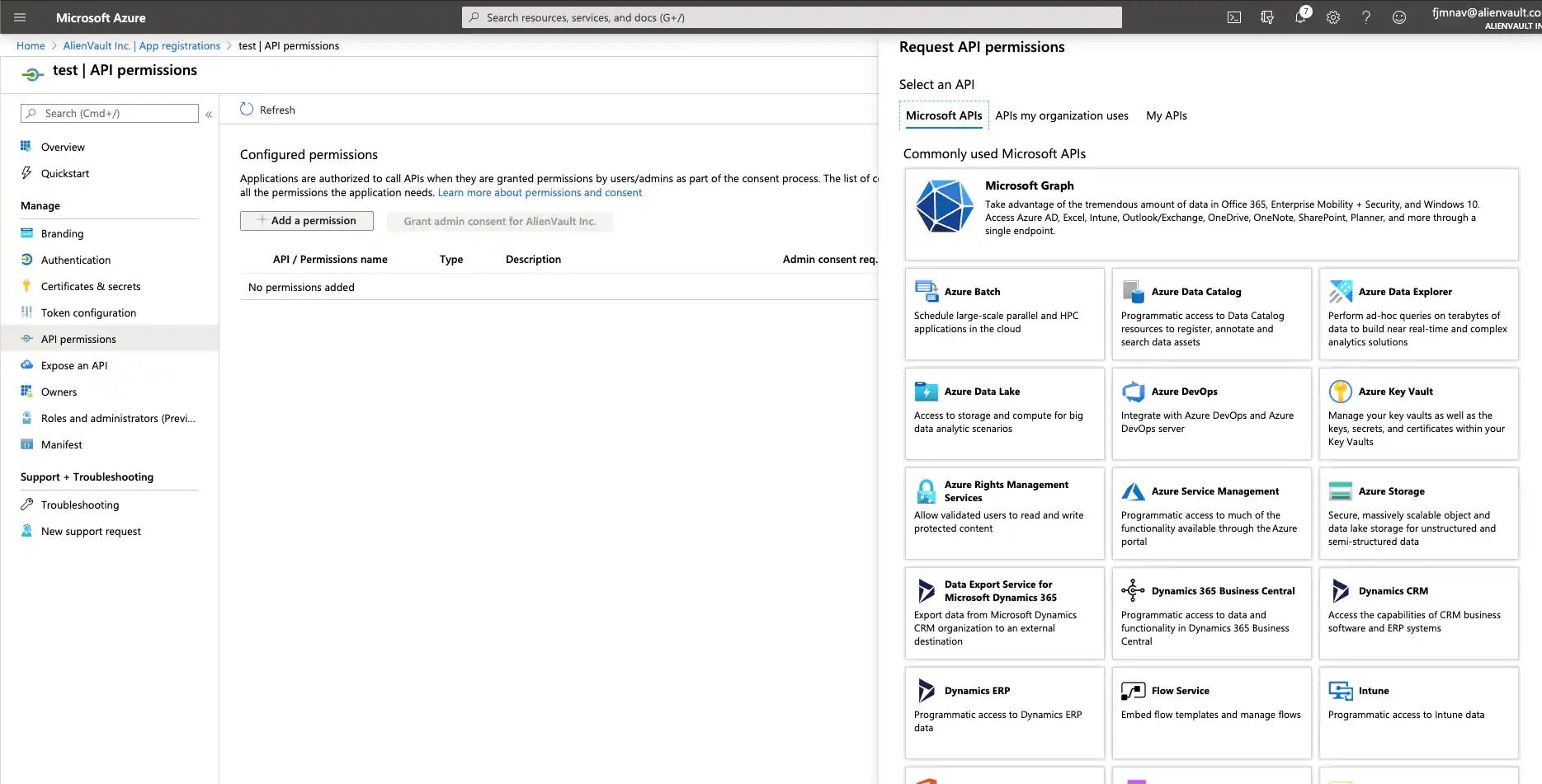 To let your application collect user information in your Azure environment, you need to grant Microsoft Graph API permissions. To grant API permissions- Log in to the Azure portal (https://portal.azure.com) and select your application.