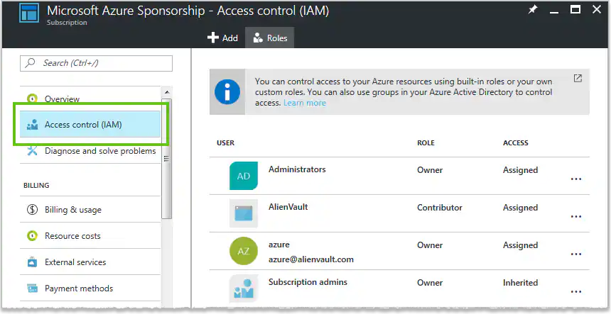 If you want to use USM Anywhere to monitor all of your Azure resources, you should associate it with your Azure subscription as a whole. To associate the application with the entire subscription- Log in to the Azure portal (https://portal.azure.com).