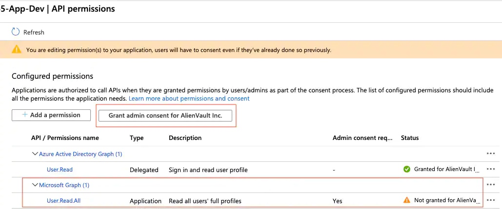 These permissions require admin approval, so make sure to click Grant admin consent for.