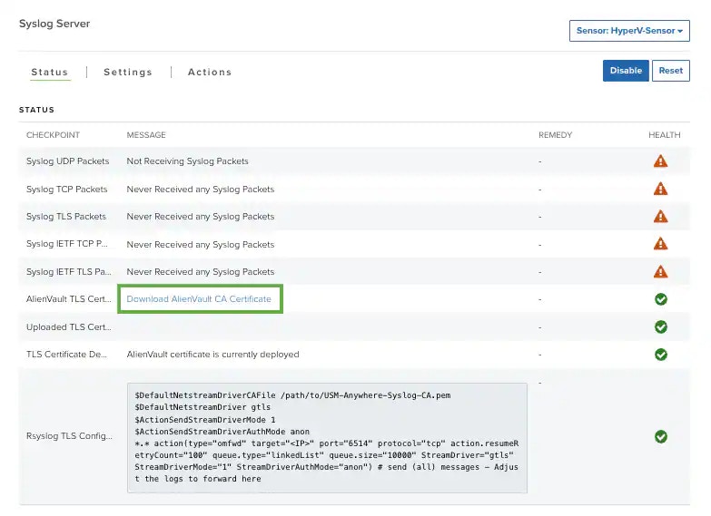 Note: When redeploying a sensor with TLS syslog encryption enabled, the new sensor will not maintain your previous encryption configuration. You must configure your TLS syslog encryption again for the redeployed sensor: