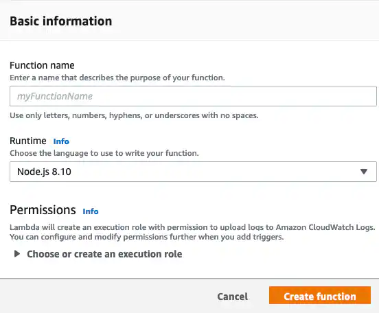- Open the AWS Lambda page and click Create a function.