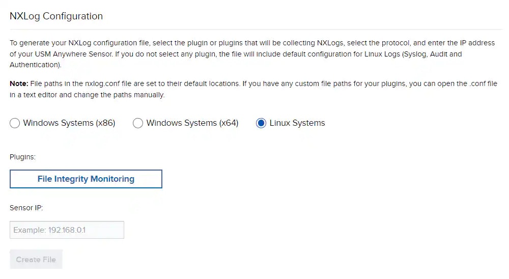 Click Create File to generate the new nxlog.conf file and save it to your NXLog installation directory.