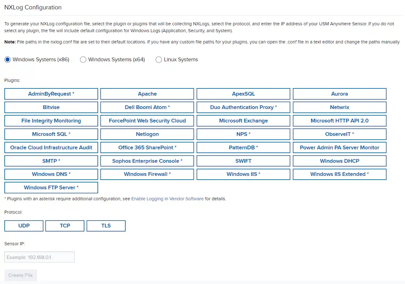 C:\Program Files (x86)\nxlog\conf\nxlog.conf (32-bit) or C:\Program Files\nxlog\conf\nxlog.conf(64-bit). - Log in to USM Anywhere and go to Settings > System.