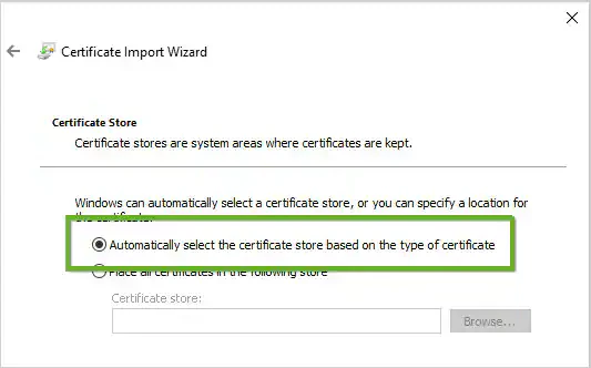 Select automatically select the certificate store based on the type of certificate and click Next to finish.