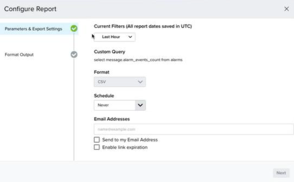 The scheduling parameters in Advanced Query follow the same format as in the USM Anywhere Scheduled Reports. Refer to Create and Schedule Reports for more information.