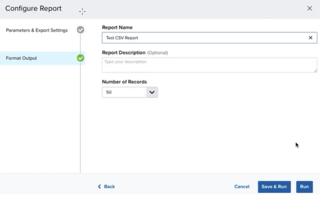 - Clicking Save & Run generates the report and saves it to the Saved Reports list. Refer to Saved Reports on USM Anywhere for more information.