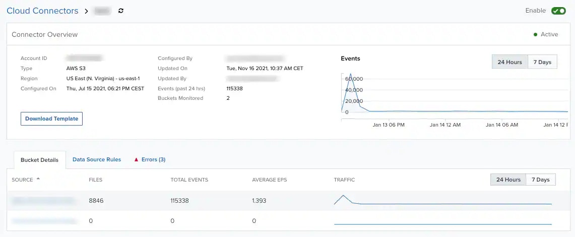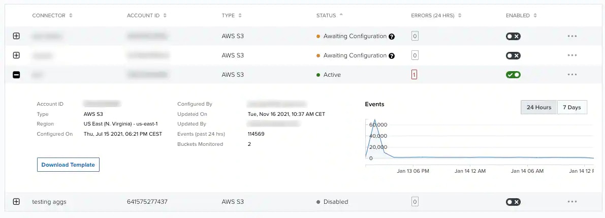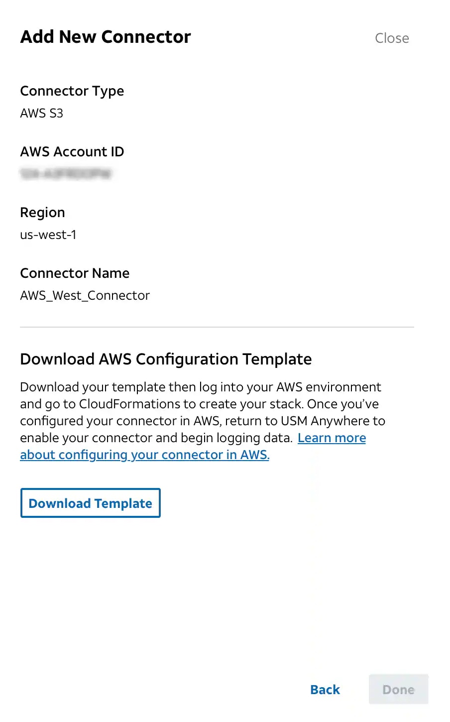InventoryConnector-template.jsonors3connector-template.jsonfile downloads. This is the default name of the file depending on your connector type, but you can change it. - Open your AWS Management Console page, and then upload the template. See Uploading AWS CloudFormation Templates for more information.