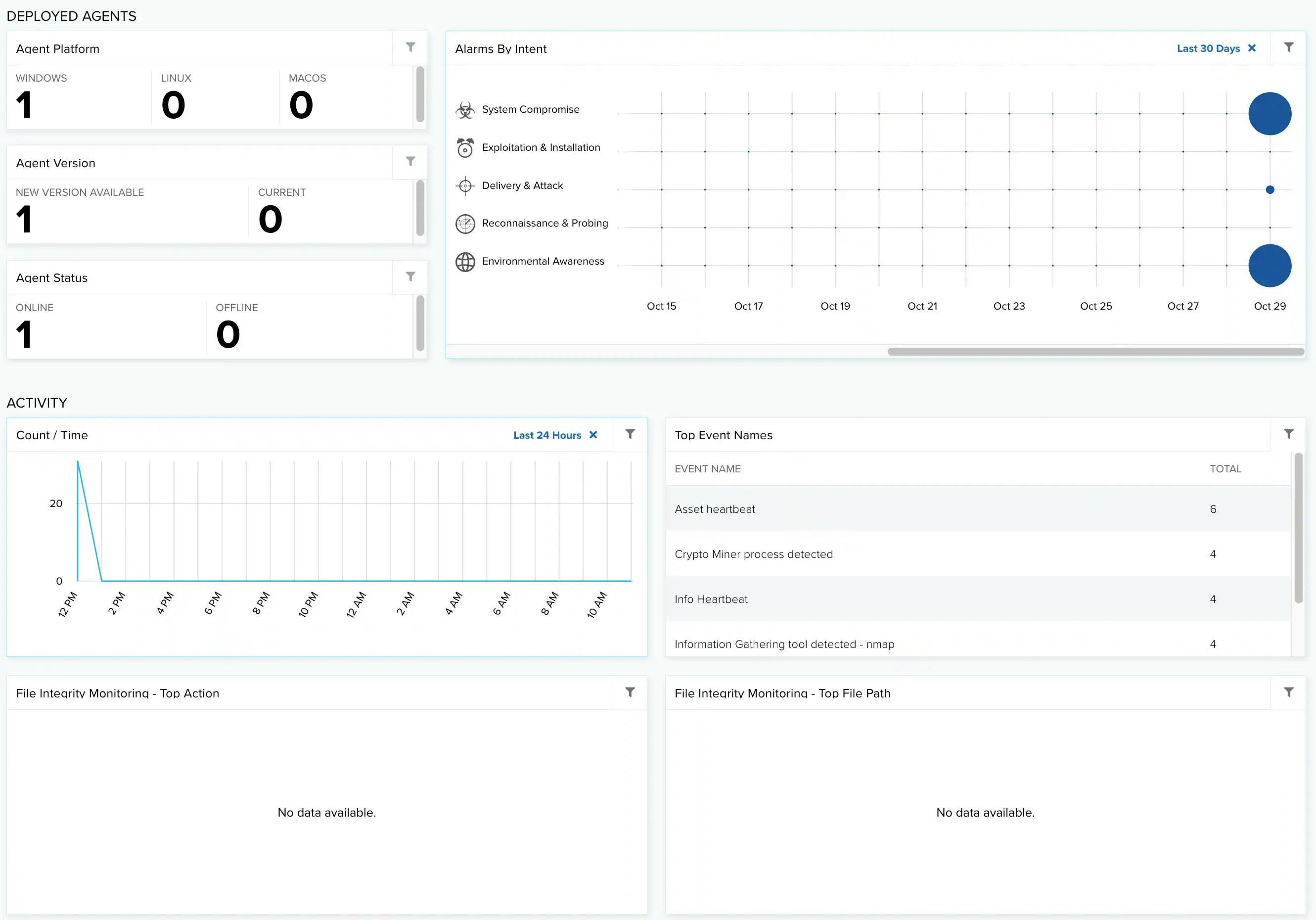| Top Event Names | List of the top events related to the agent. |