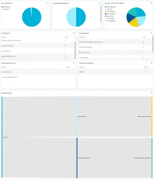| Blocked Activity | Sankey diagram which displays the blocked activity detected by Cisco Umbrella. |