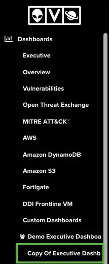 The new dashboard displays in the navigation menu, below Custom Dashboards.