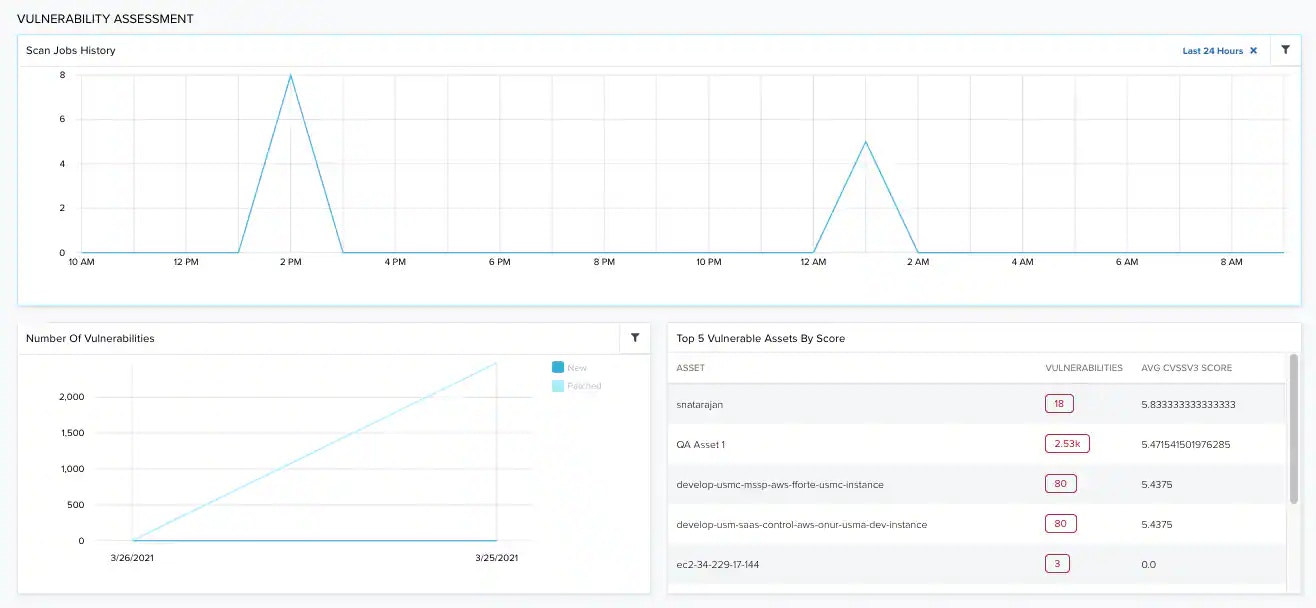 | Scan Jobs History | Graph that displays the total number of asset scans on each day in the current month to identify vulnerabilities. |