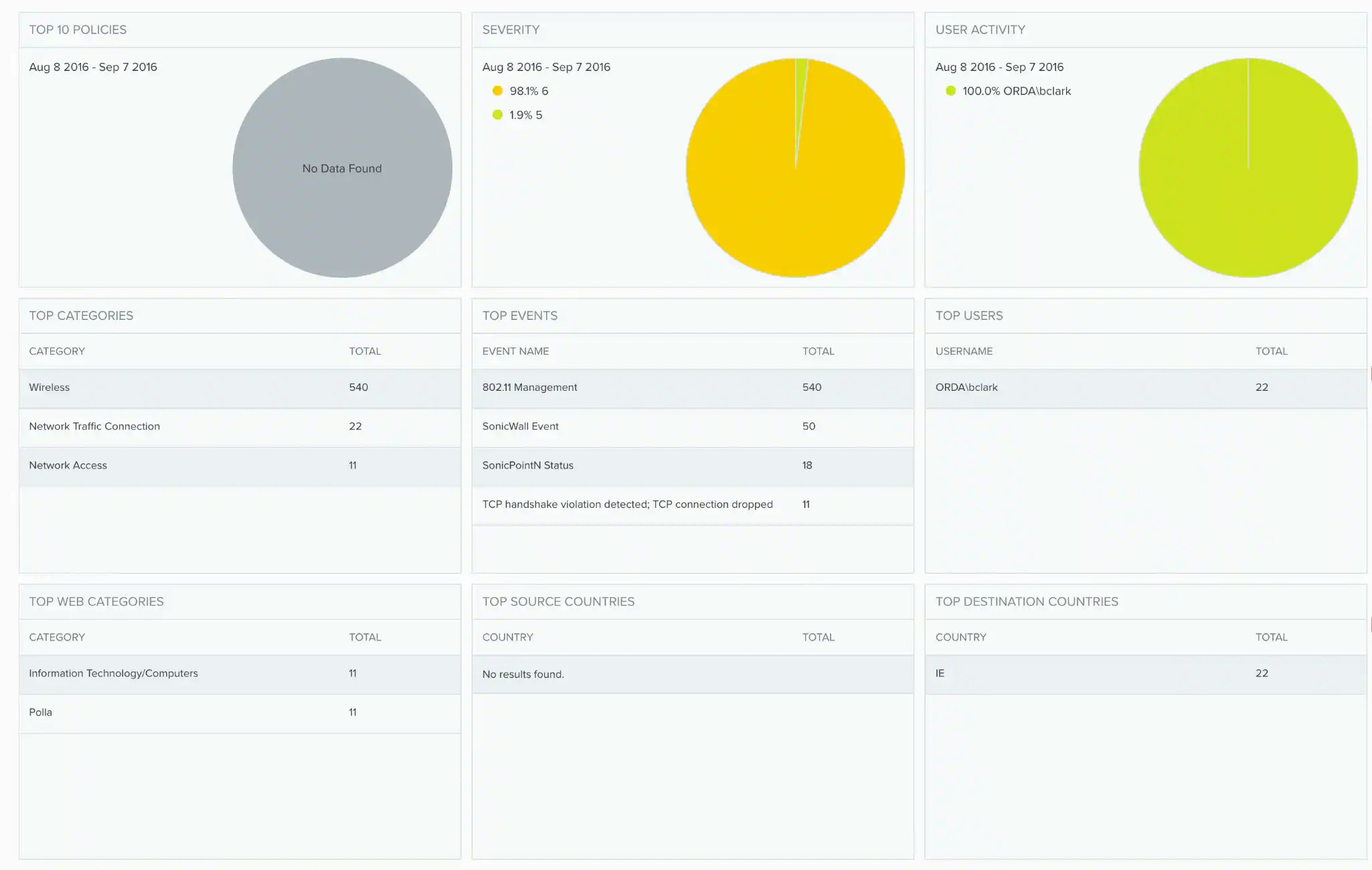 | Top Events | List of the top SonicWall events expressed in total numbers. |