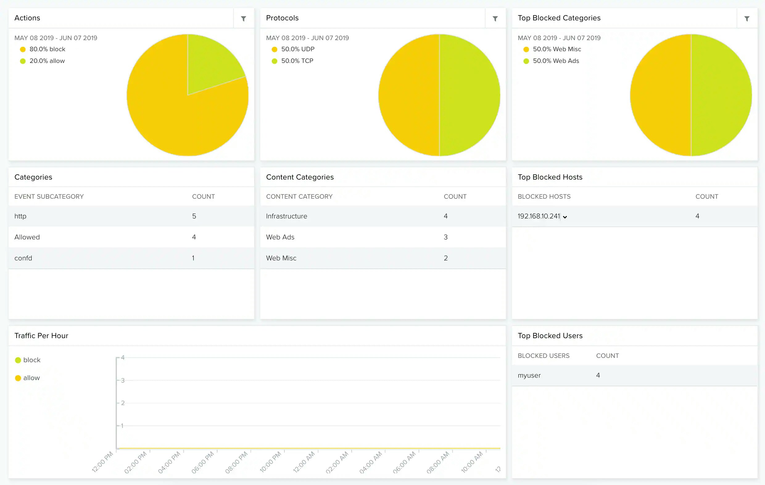 | Top Blocked Categories | Pie chart displaying, in percentages, the top blocked categories. |