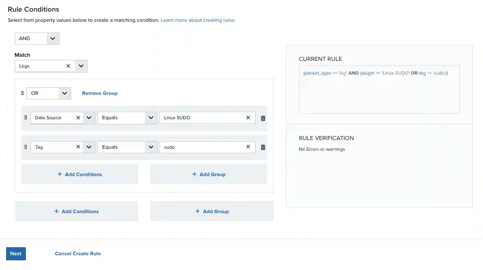 Note: You can also create your own rules from the Events page, which is an easier way to configure the matching conditions. See Creating Suppression Rules from the Events Page for more information.