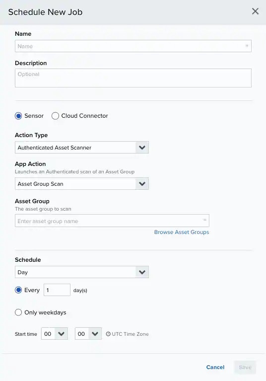 Discovers assets in your environment, detects changes in assets, and discovers assets in the network.- Select Existing Asset Group: In the Enter asset group name field, search for the asset groups to scan. These asset groups are already existing, and you can search for them by entering the name of the asset group or by browsing for them.
