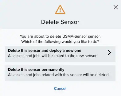 - Click Delete this sensor permanently. The deleted sensor is not displayed in the list of sensors.
