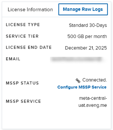 - Click Manage Raw Logs in the License Information section.