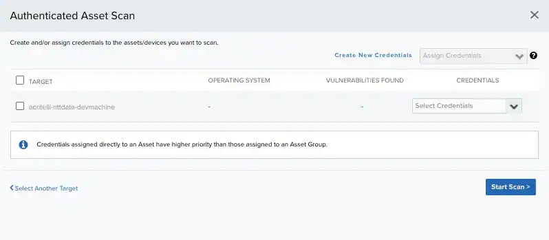 - Environment > Assets for running an authenticated scan in that precise moment. See Running Authenticated Asset Scansfor more information.