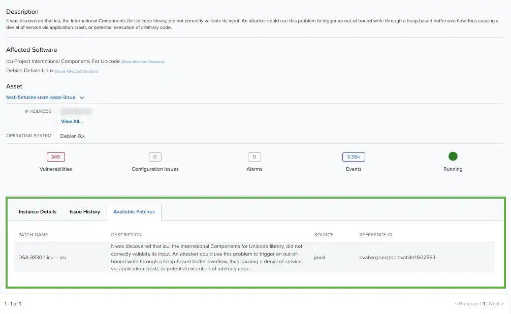 - Search for the vulnerability where you want to see the available remediation patches. See Searching Vulnerabilities for more information.