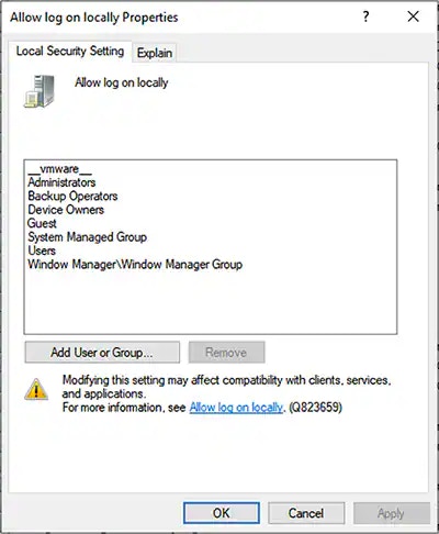- Repeat these steps for Allow log on through Remote Desktop Services.