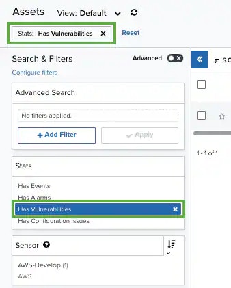 Click the filter Has Vulnerabilities.